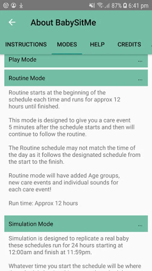 When using the app you will be able to choose between Easy, Medium, Hard or Play mode simulations. The Easy, Medium & Hard simulations run on a 24-hour schedule. The Play mode is designed for people that are just wanting a fast-paced version of the app. It is a shortened version of the simulation modes where the care events are very close together and don’t last very long.