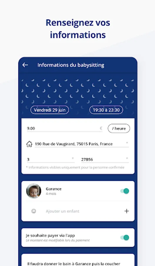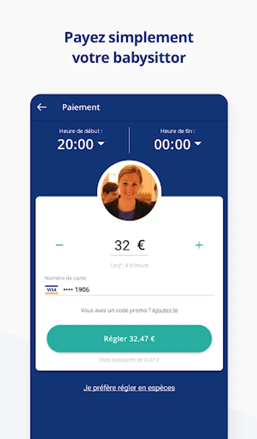+ No change? Pay with one click your babysitters (without any fees from us).