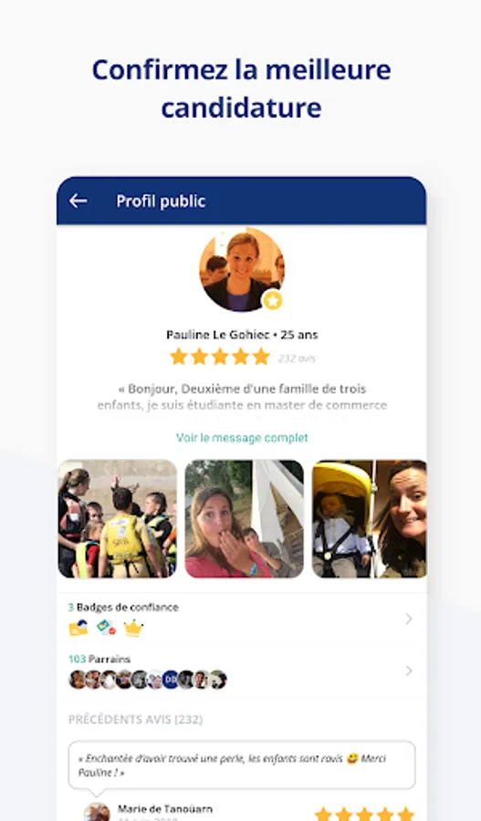 + Create your own trusted community on the app with your friends, family and babysitters. This will allow you to find the best profiles that fit your needs!