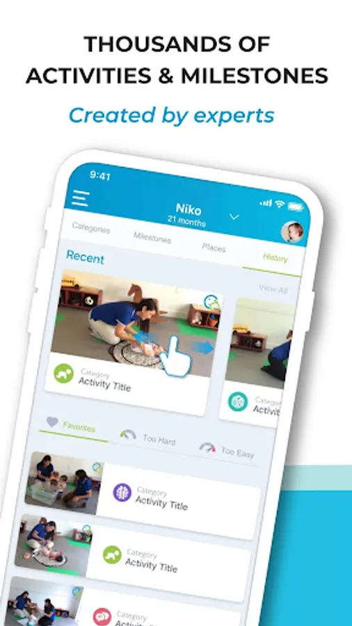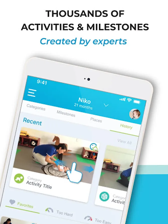 Designed by child development experts and used by millions of parents and caregivers worldwide, BabySparks offers thousands of activities and milestones for children ages 0-3. You get a personalized development program with proprietary smart adaptive technology that learns and adapts to your child’s specific needs.