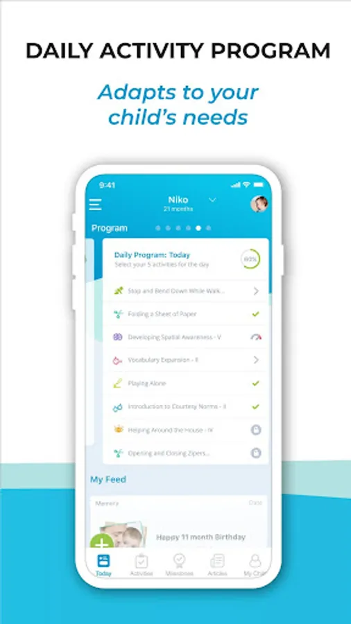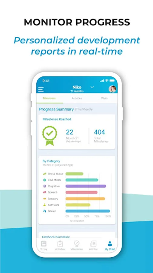 - Tools to monitor your child’s milestones, progress, and growth, including personalized reports