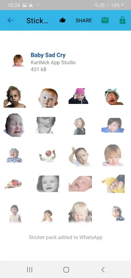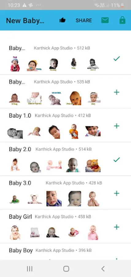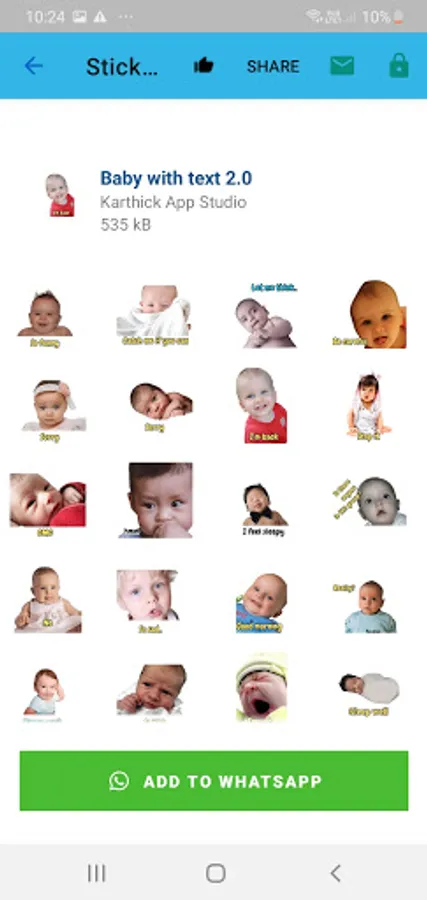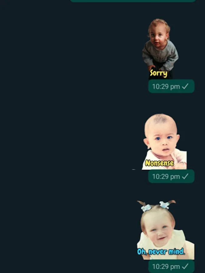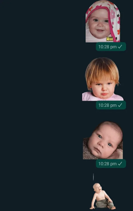 Cute and Funny New Baby Stickers for WhatsApp has more than 200 baby stickers. Now you can send cool Cute and Funny New Baby stickers in your WhatsApp chat with your friends and family. All the baby stickers have cute expressions and funny face.