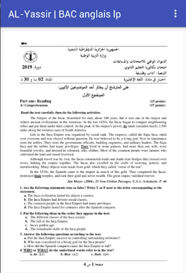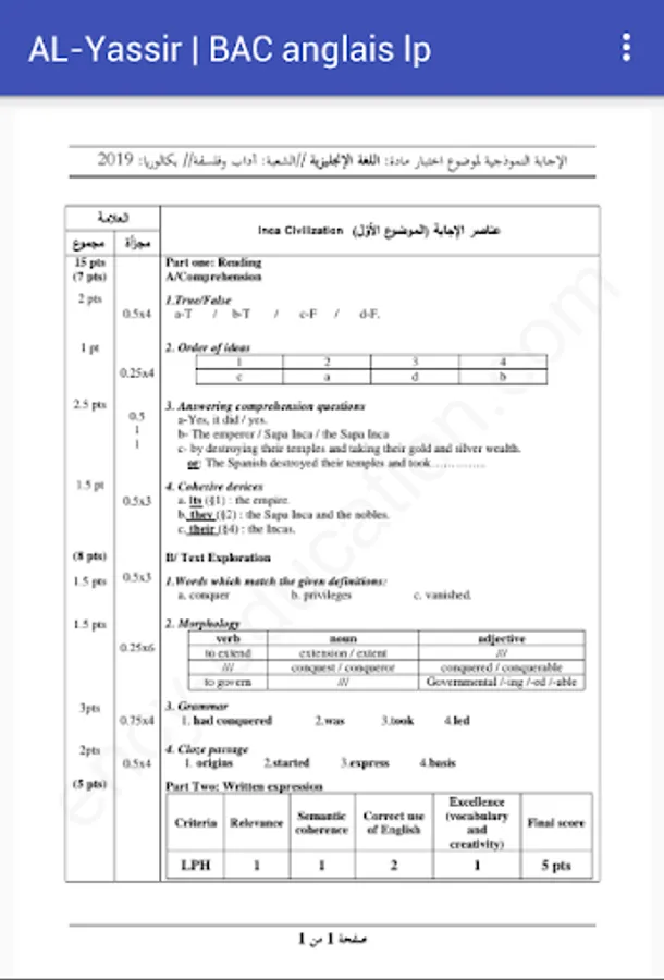 بعض التصحيحات مأخوذة من الموقع الأول للدراسة في الجزائر encyeducation أو من موقع bac 35 وكذا موقع dzexam