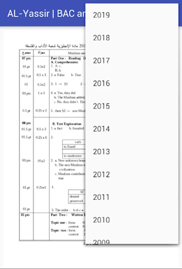تحتوي التطبيقات على شهادات البكالوريا bac 2008 حتى bac 2019