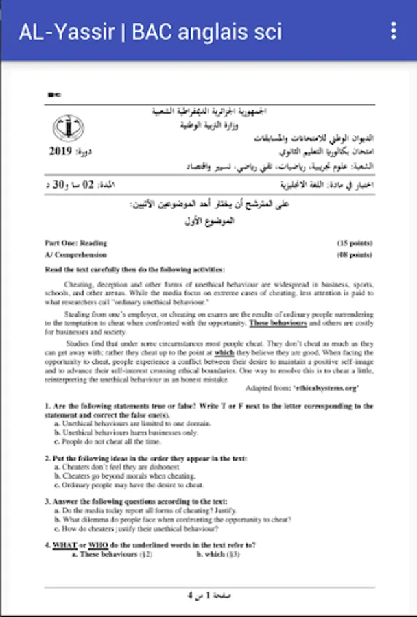 Some of the corrections are taken from the first website to study in Algeria encyeducation or from the site bac 35 as well as the site dzexam