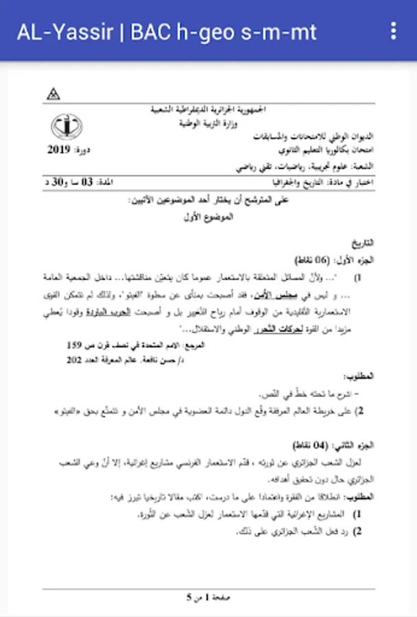 Some of the corrections are taken from the first website to study in Algeria encyeducation or from the site bac 35 as well as the site dzexam