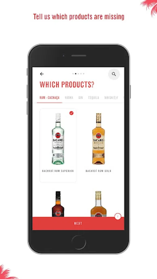 - Browse through the images of your favorite Bacardi brand products to select the brand(s) you want to report.