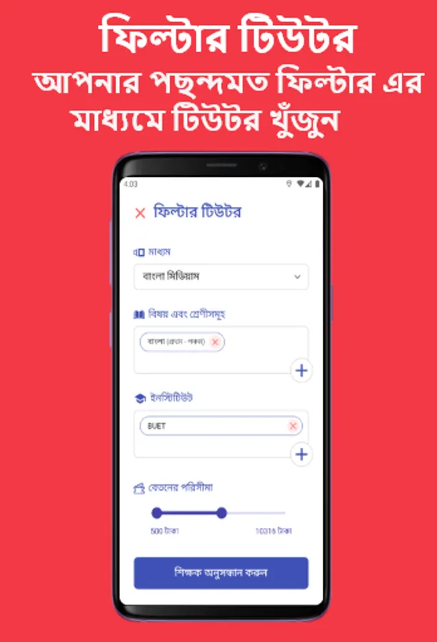 • Find nearest tutors (tutors go through some tests/exams before boarding in our platform).