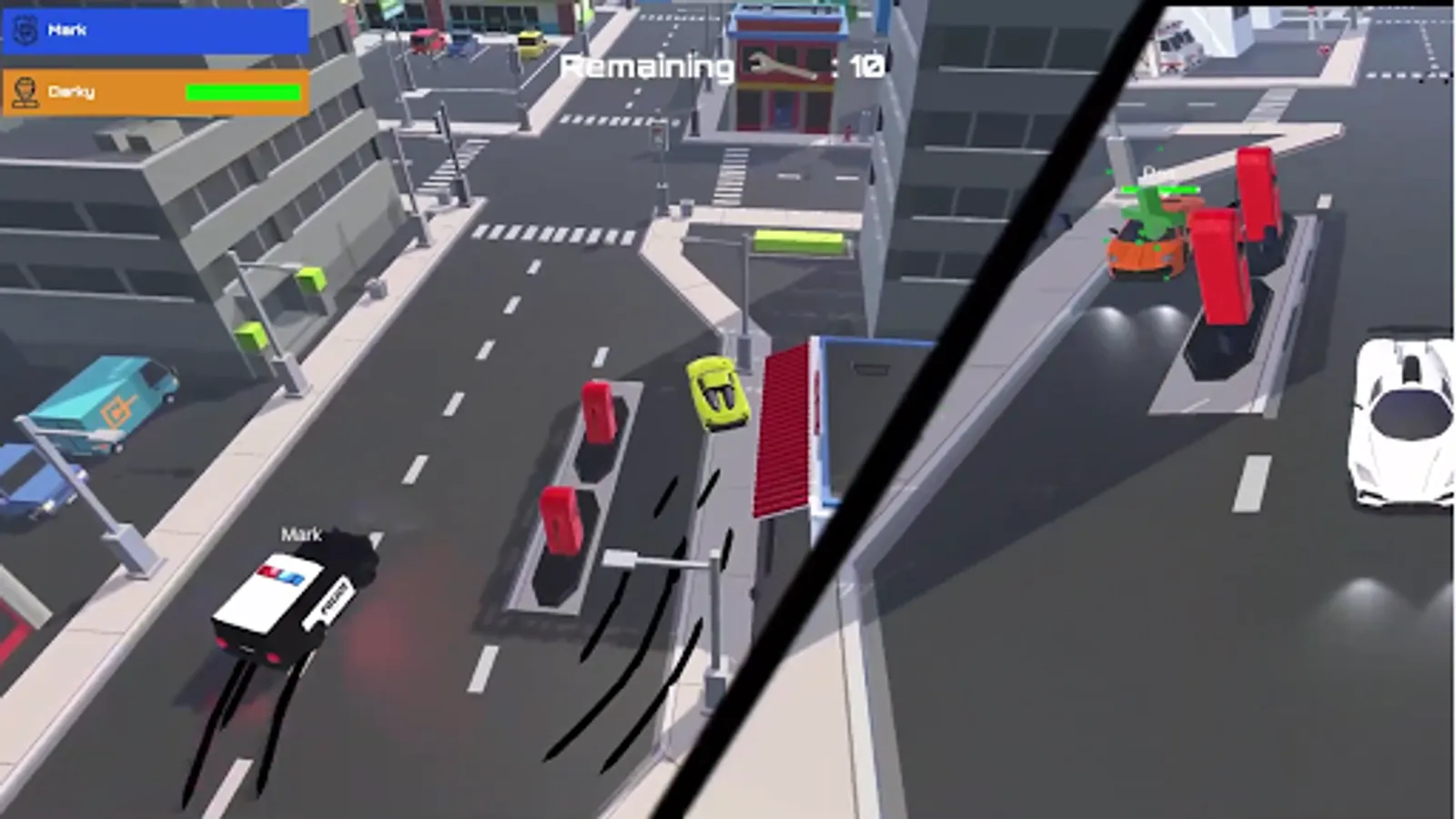 In this multiplayer racing game you can play the role of a cop or of a rival. Collect all the wrenches and escape from the police, or destroy all the rival cars with the help of your unique police equipment.