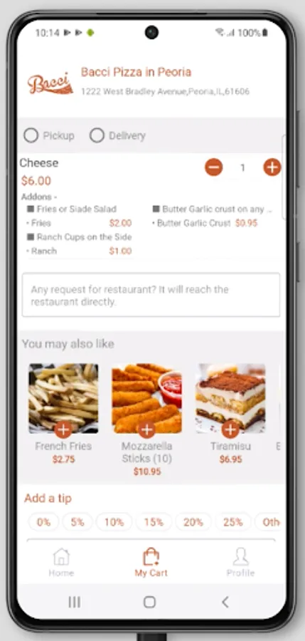 1. Get the Bacci Peoria Online Order app and conveniently order from anywhere on your Android phone and tablet.