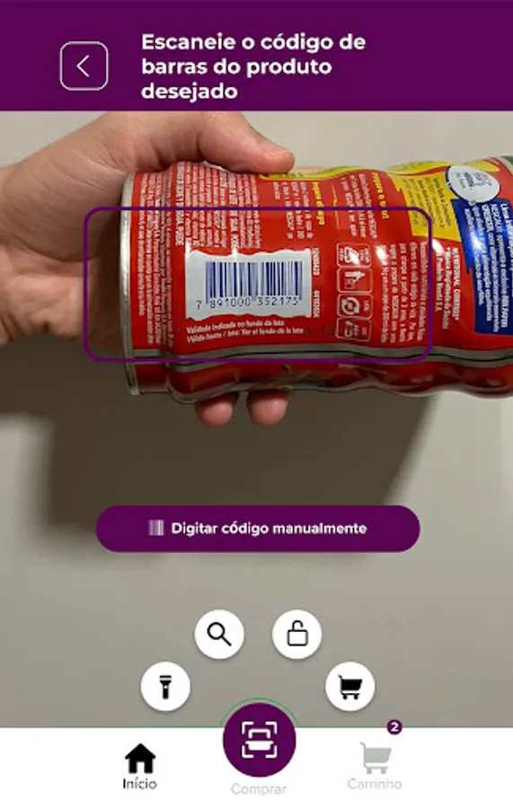 After logging in, simply choose your product and pay by pointing your cell phone's camera at the product's barcode.