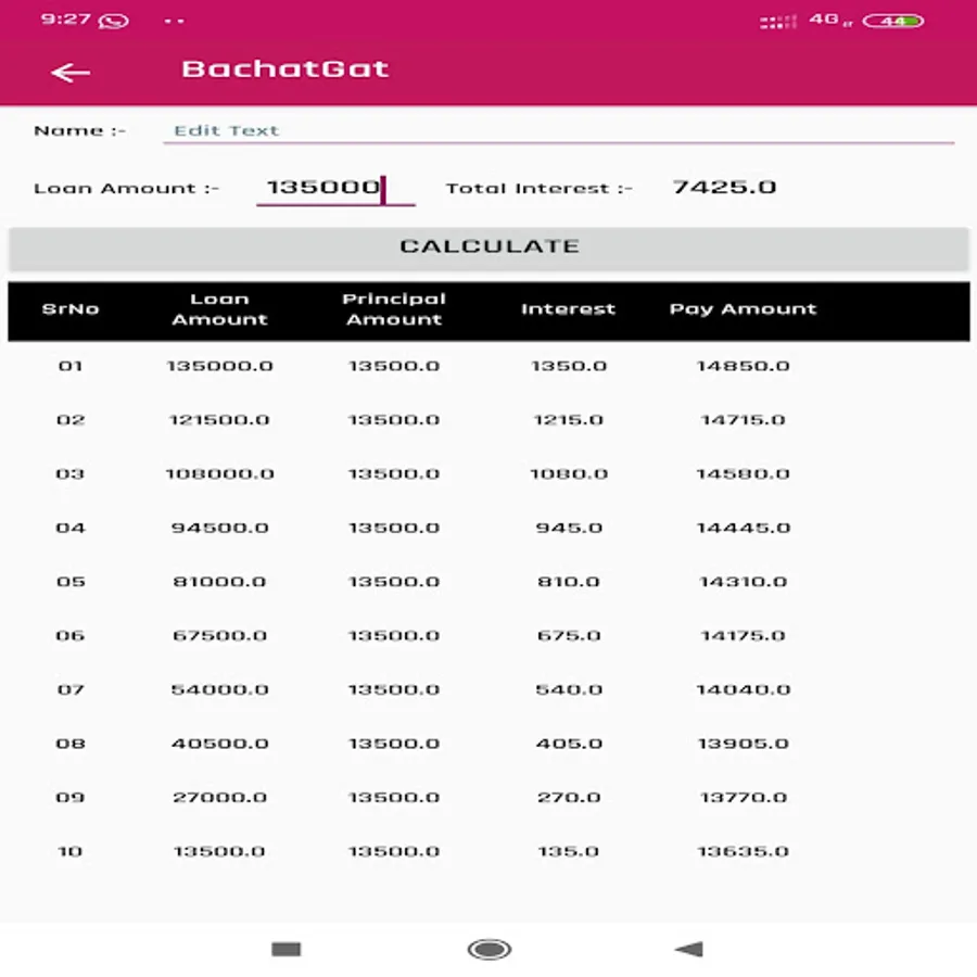Nice application for BachatGat, calculate the loan payment, calculate all loan
