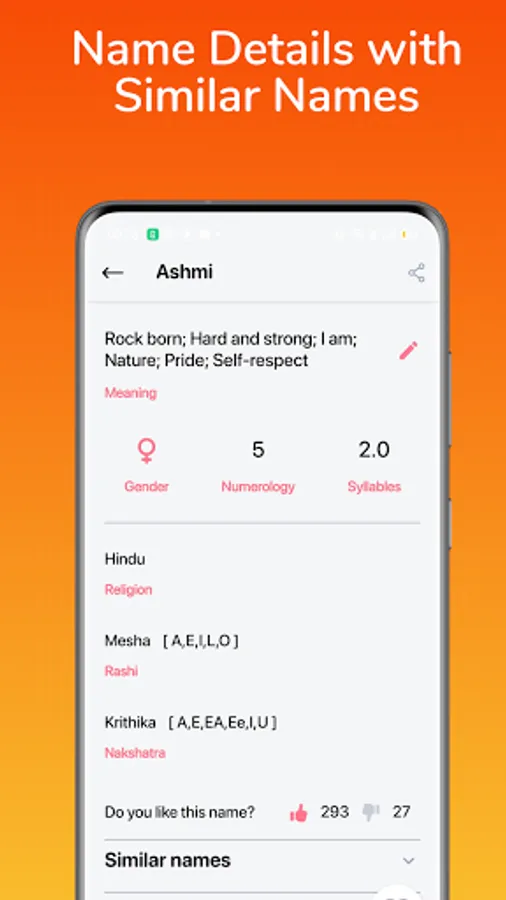 The app also provides baby boy names and baby girl names by Rashi (Zodiac Sign), Nakshatra, Numerology & Astrology.