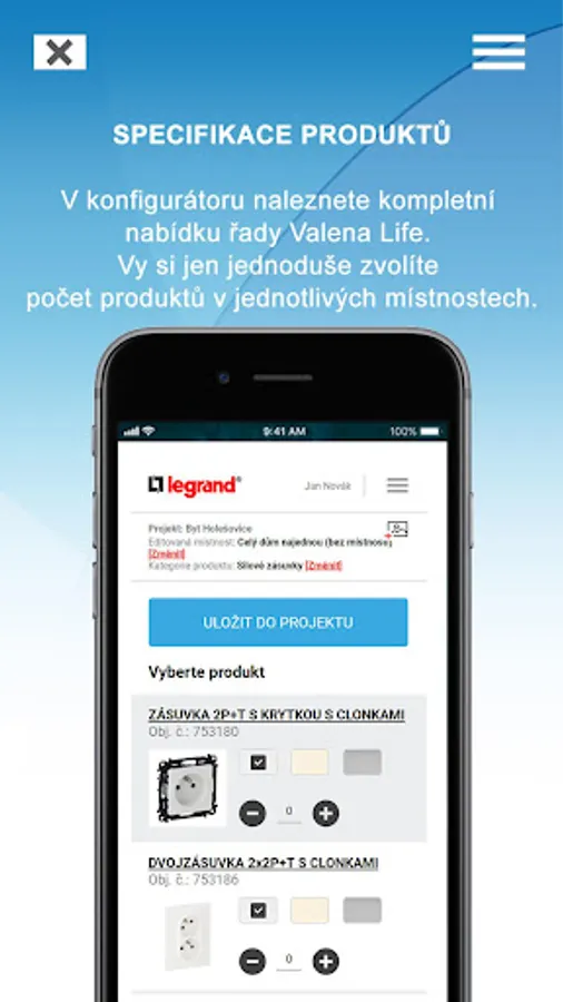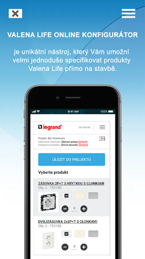 Valena Life Online Configurator is a unique tool that allows you to easily specify Valena Life products directly on site. You no longer have to list all products on paper and then rewrite, now you have all your projects in one place. All you need is your mobile phone and internet connection.