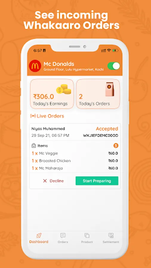 Established in 2019, Whakaaro is a leading food delivery service headquartered in Thalassery, Kerala. With over 10000 successful monthly deliveries, we are currently amongst the largest food delivery service in the Malabar region in terms of the number of successful deliveries executed daily. Currently, we are operational in two cities – Thalassery and Kannur. Apart from these, we have franchisees in Vadakara and Vadakkenchery. We accept delivery orders through our exclusive app in Google Playstore as well as through phone calls. We have dedicated order handling executives to cater to the customer needs in a selection of variety of cuisines and recipes. We focus on smooth customer experience and timely deliveries. We have a consistent track record in maintaining good customer and restaurant relations, with over 10000 active users and 100 restaurant partners