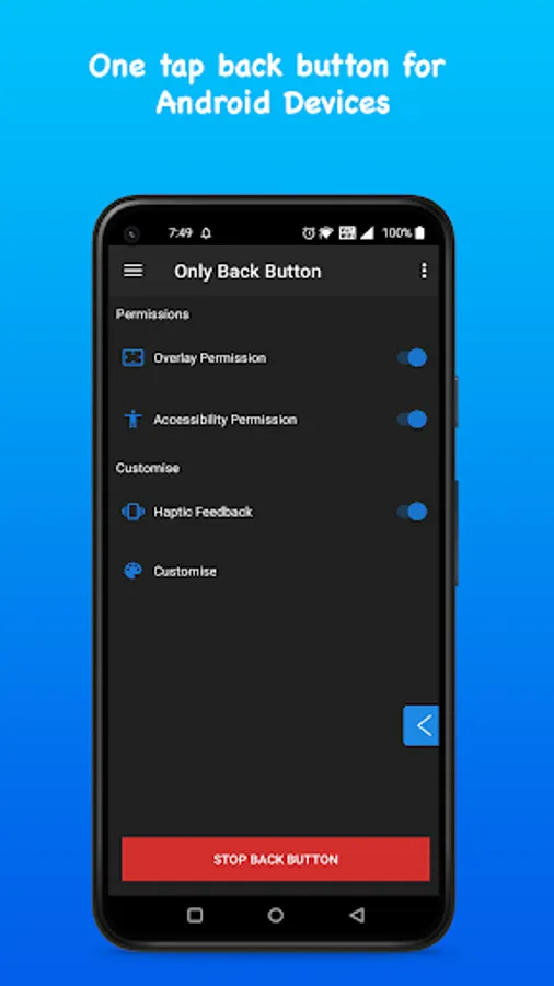 Thank you for your download, please give feedback if you like Only Back Button - One tap back button.