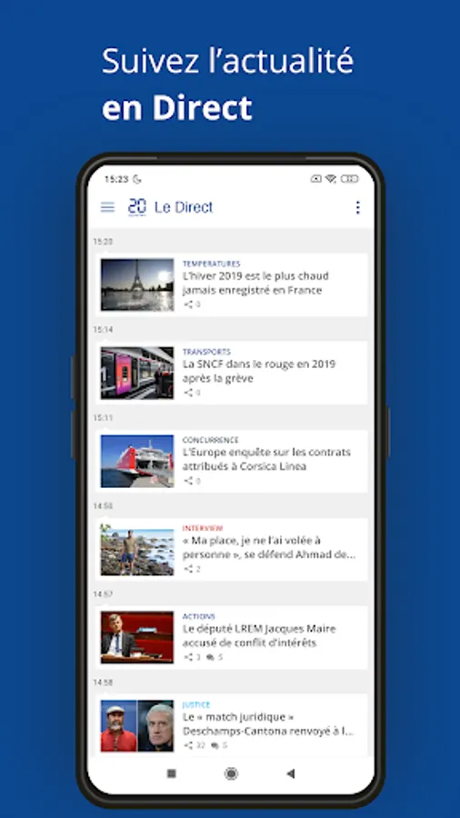 At 20 Minutes, we are committed to offering a wide range of sections in order to satisfy as many people as possible thanks to the production of very varied information: national and international news, Sport, Economy, Tech / Web, Politics, World, Health , High-tech, Sciences, Culture, Cinema, Le Direct, Media, Television, People, Style… but also the classification of the most read articles and the essential unusual column of the editorial staff “T'as vu? ".