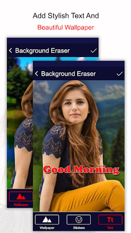 User can load his favorite background from given options by Background Eraser app. This background photo will be added to edited photo.