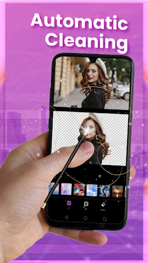 Cut out background of photos and replace it with your favorite background. This fantastic background eraser handles challenging edges, like hair and other tricky conditions, exceptionally well. Using this photo background remover, you edit and save the transparent images in PNG or JPG format. Download AI Background Remover from the store for free and remove background from images instantly.
