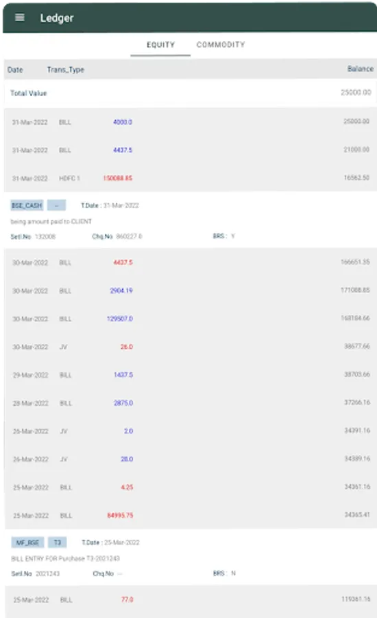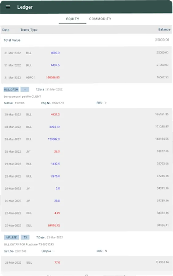 - Ledger report