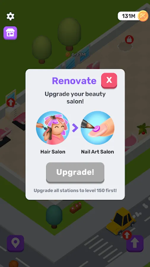 Keep earning and upgrading to progress your salon. Choose your upgrades to maximize your efficiency and reach the next stages, where you'll expand your offerings with more services and even greater profits!