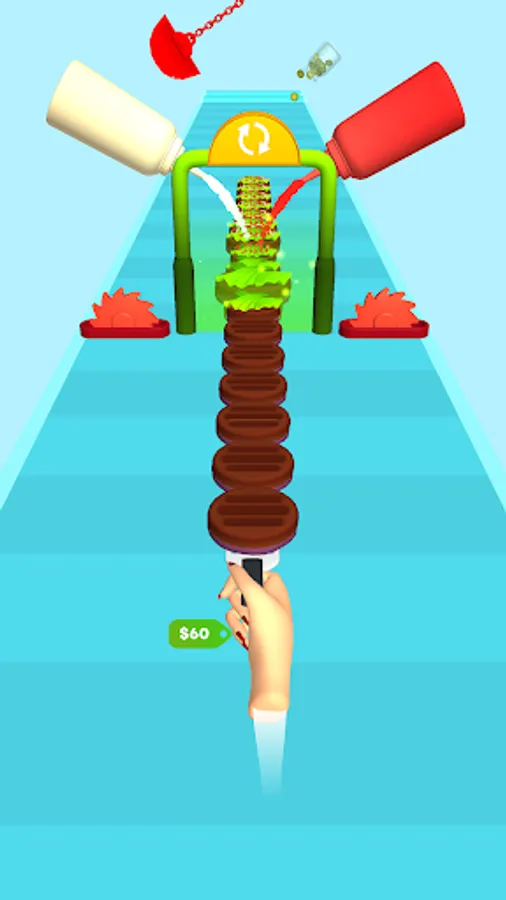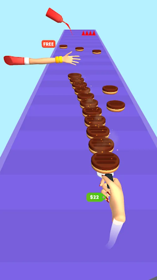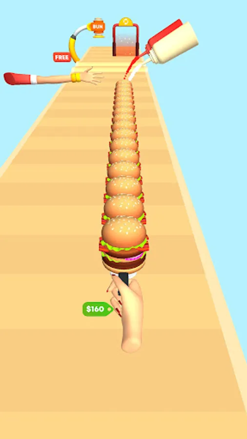 Collect a stack of patties at the start of the level. Only the finest beef, please. Don't fill your burgers with useless junk!