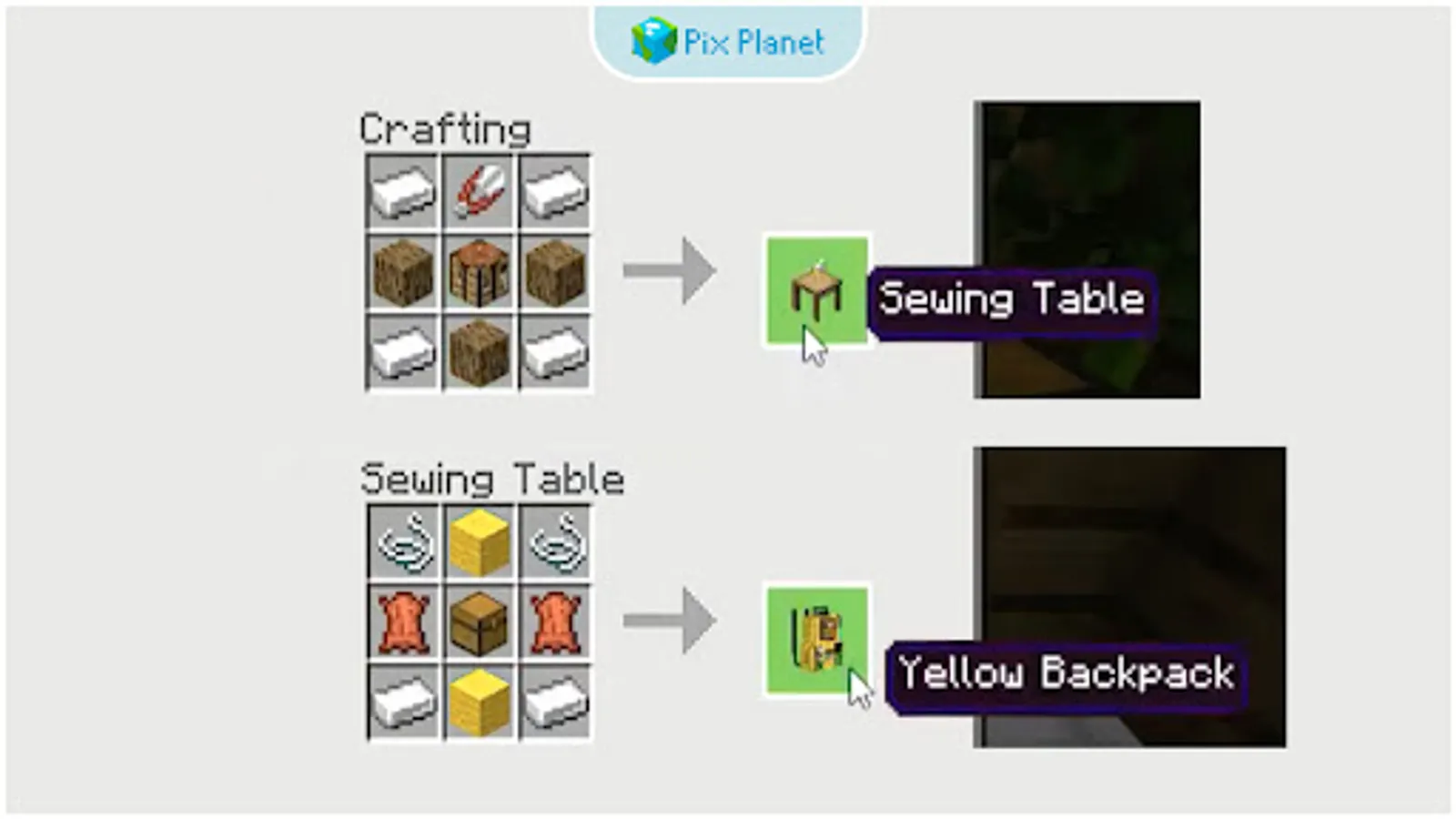 The backpacks have 27 slots. These are craftable using the sewing table and can be equipped in your chest slot. To open the backpack simply look straight down and interact this will open the backpack showing your storage. The backpacks also come in a variety of colors and can be upgraded to large backpacks containing 54 total slots!