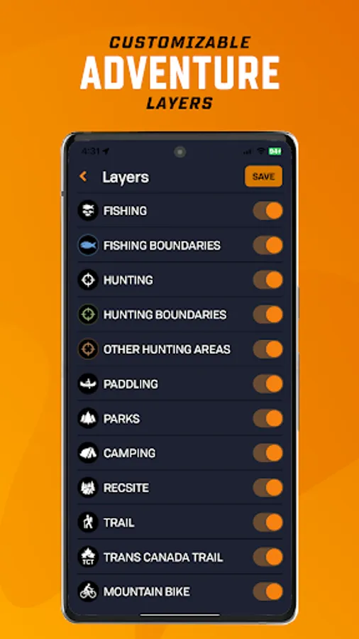 - 11 Adventure Layers revealing 1000’s of Points of Interest within each Adventure Layer providing descriptions, access, trail info, fish and hunt species and so much more