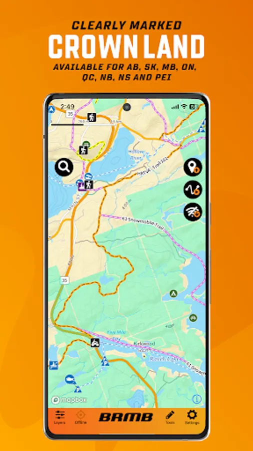 BRMB Maps is your GPS navigational guide to Canada’s backcountry & all outdoor Adventures. Allowing you to research, plan and navigate on or offline, the BRMB Maps Smartphone App and Web Map showcases all of Backroad Mapbooks’ industry-leading road and trail maps across Canada. Complemented with thousands of outdoor recreation points of interest such as Hunting, Fishing, Camping, Hiking, Biking, Canoeing, Kayaking, ATVing, Snowmobiling, Skiing, Snowshoeing, Wildlife Viewing and more, along with descriptions and statistics not found in other mapping apps.