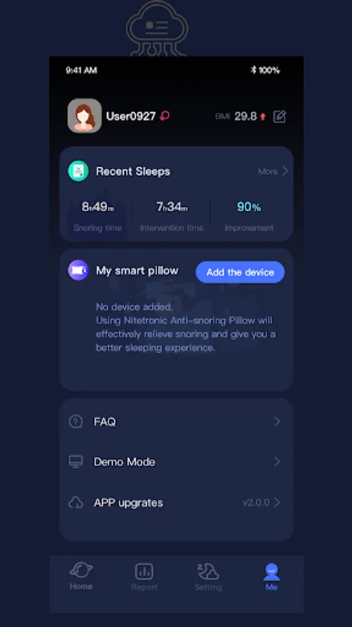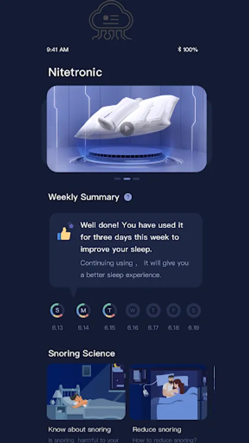 The Nitetronic APP is an application used to connect with the Nitetronic smart pillow, aimed at recording snoring patterns during sleep and setting the parameters of the smart pillow. The main functions of this application are as follows: