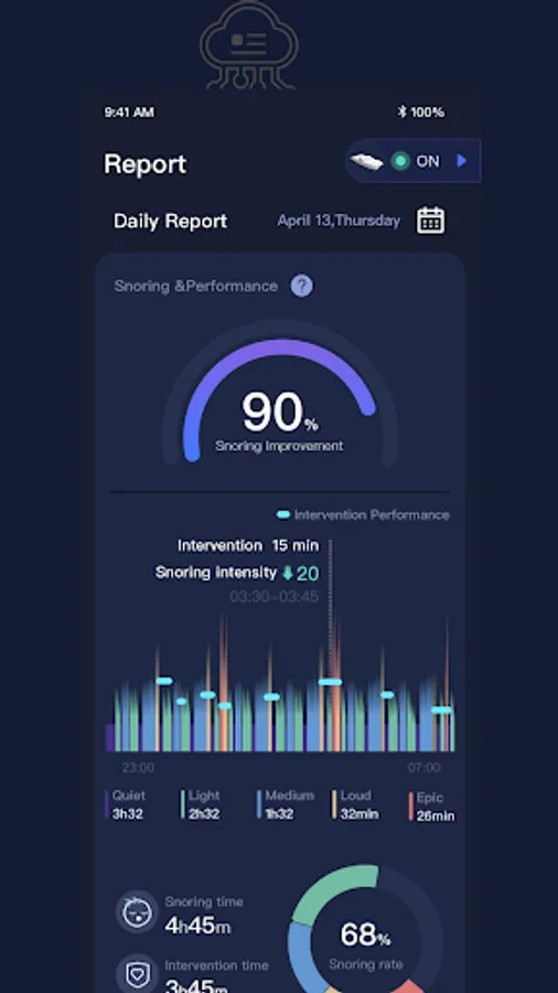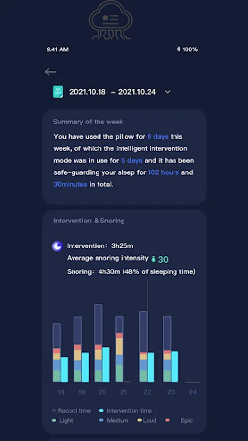 1、Displaying the snoring data recorded by the Nitetronic smart pillow;