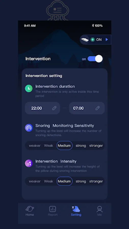 2、Setting the parameters of the smart pillow to customize the best sleep experience according to your own needs.