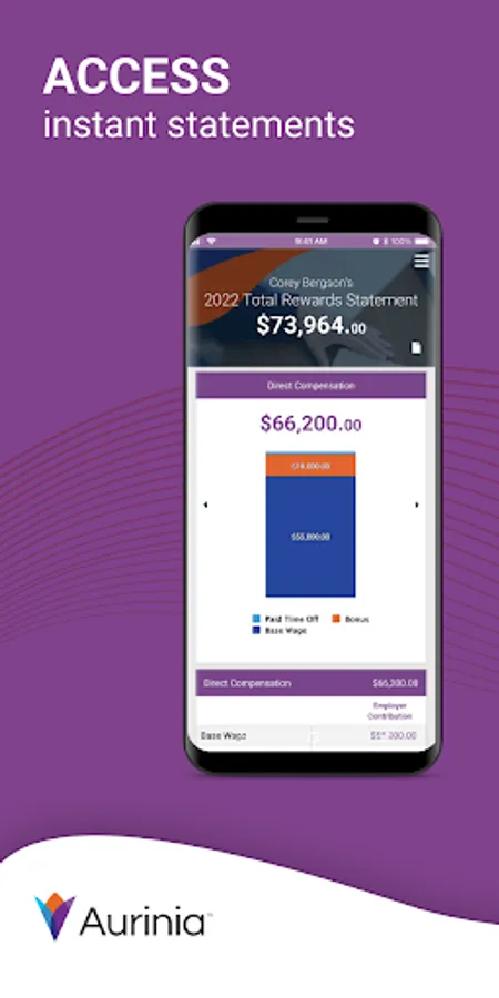 Aurinia Total Wealth gives employees the ability to access up-to-date compensation data and benefits information. Employees can access provider information and more - all in the palm of their hand!