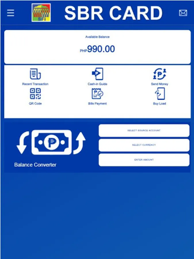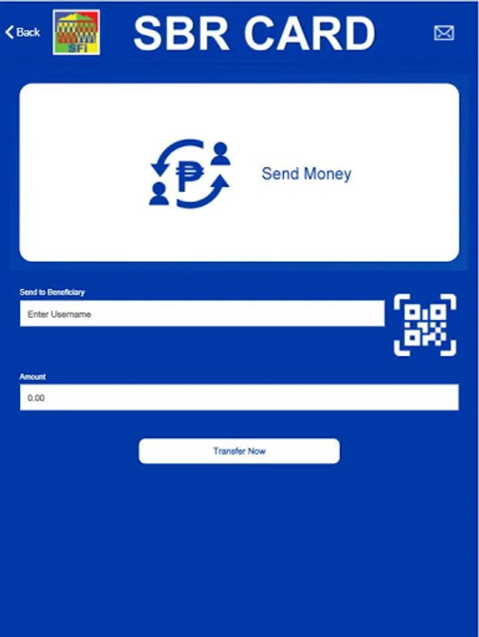 The SBR Card mobile application allows the cardholder to gain access to payment functionalities such as real-time card-to-card transfers, balance inquiry, and transaction history.