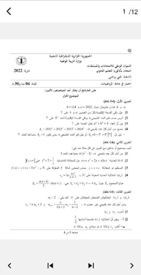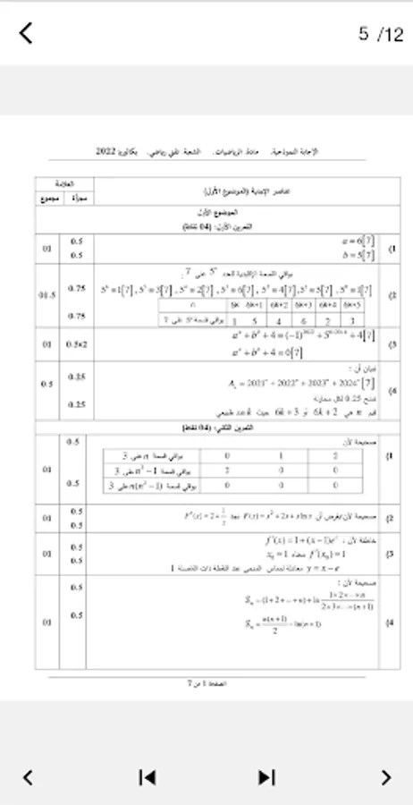The application contains baccalaureate topics with solutions, which is the typical correction and the point scale