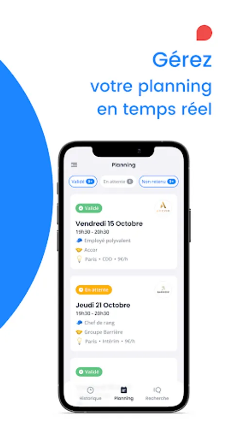With our ergonomic and very functional mobile application, create your profile in just a few minutes and manage your schedule in real time.