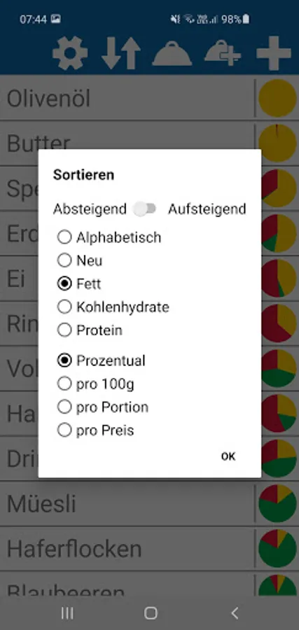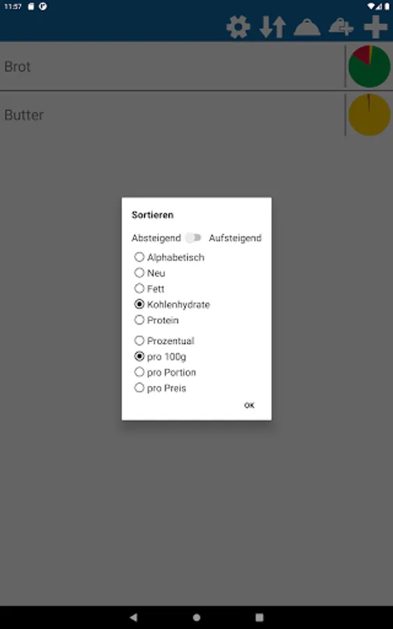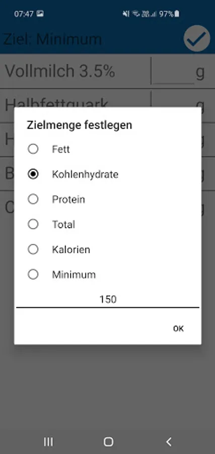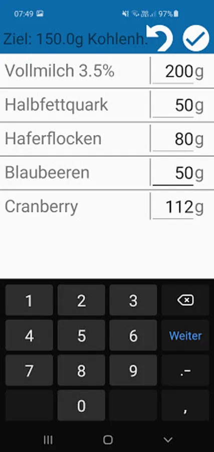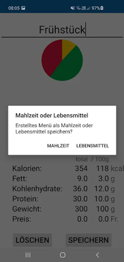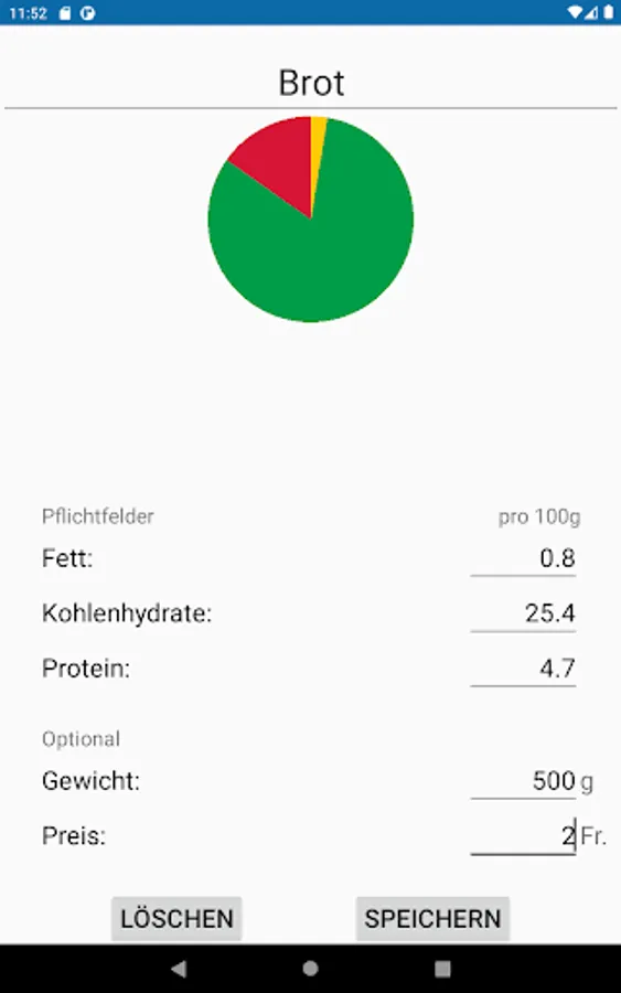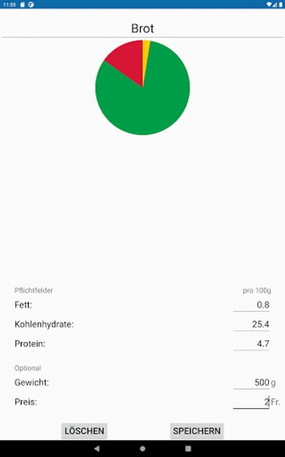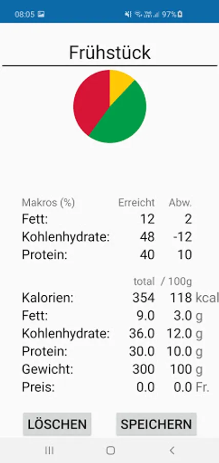 With this app meals can be calculated in order to achieve the individual macro goals.