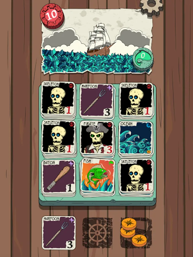 - 10 different SEA CARDS to sail using LUCK or TOKENS