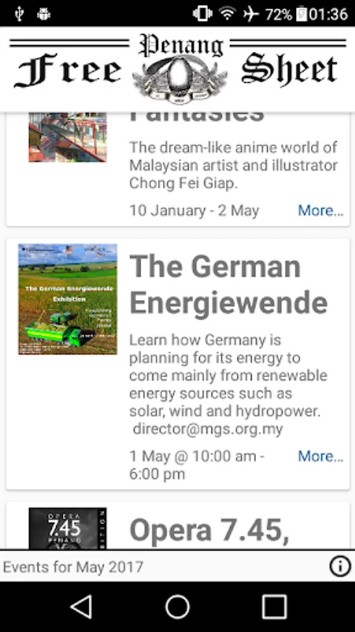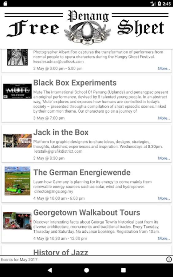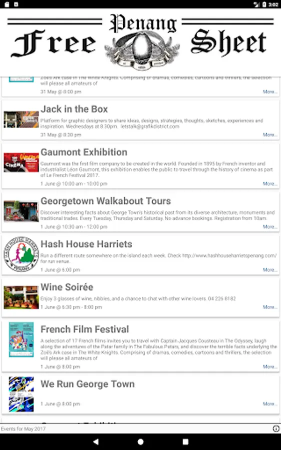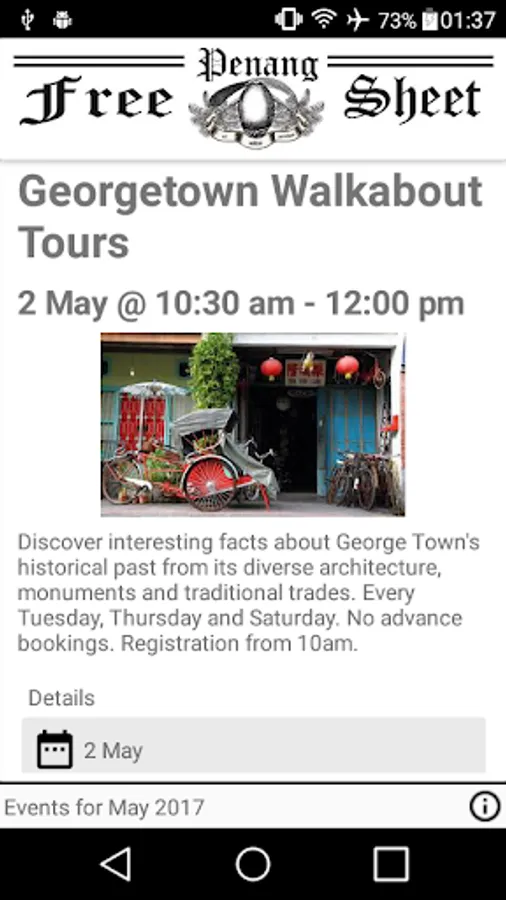 You can find here all interesting events going on in Penang City in Georgetown, Malaysia