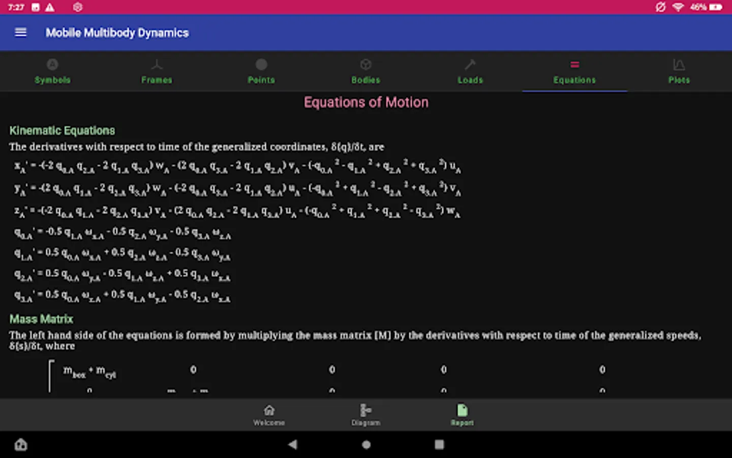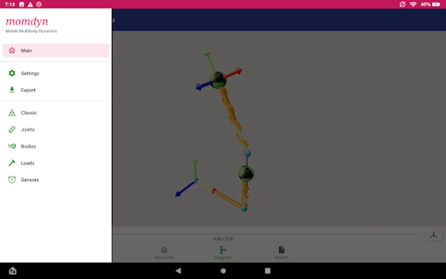 MOMDYN is an excellent educational resource for students enrolled in dynamics, vibration, or structural analysis coursework as part of a mechanical or aerospace engineering program. The modeling process and equations are all visible to the user, and you can even export custom Python code so you can simulate your system on a desktop. The app provides an entry point to learning multibody dynamics simulation, which will ease the learning curve for using modern scientific computing software.