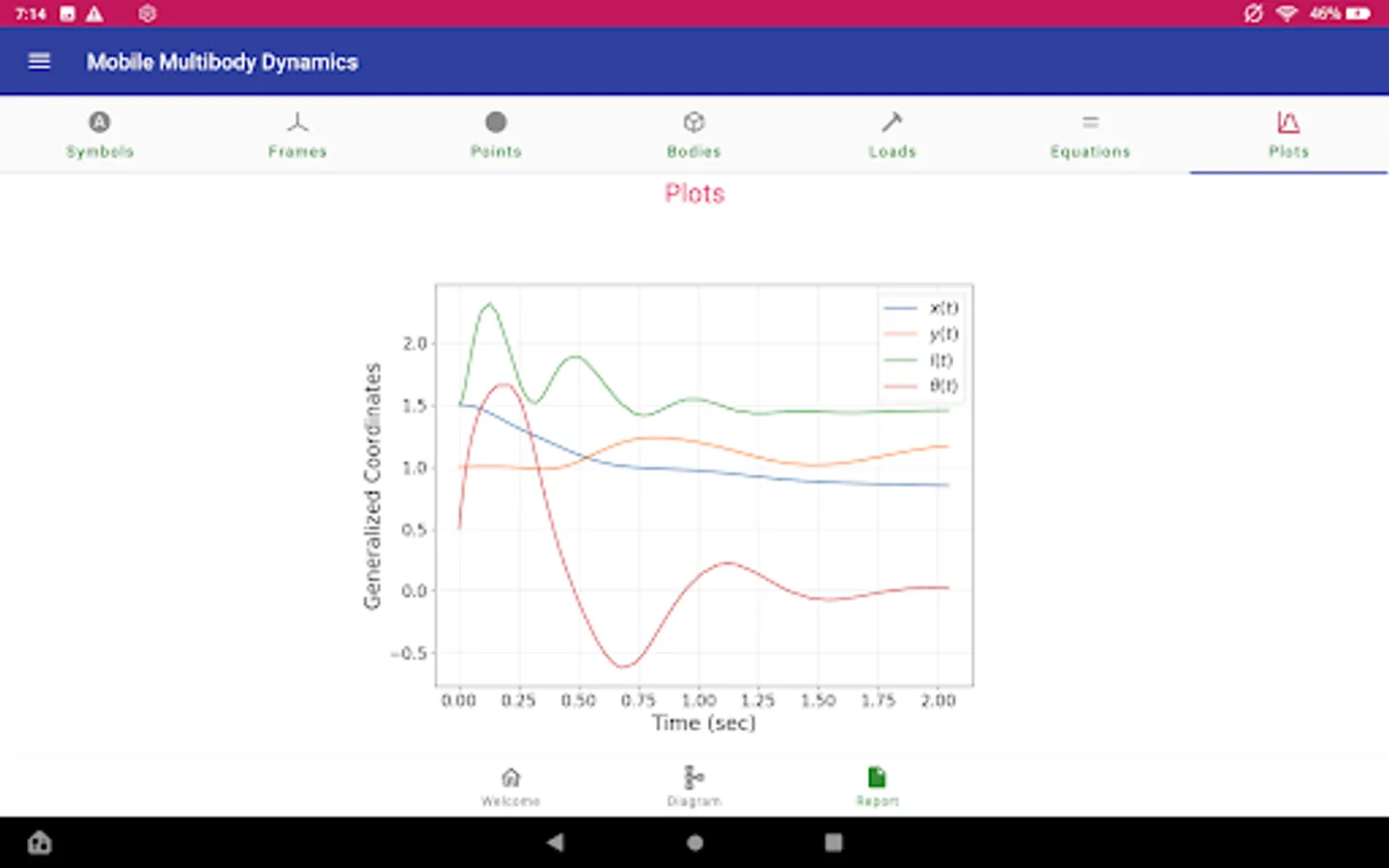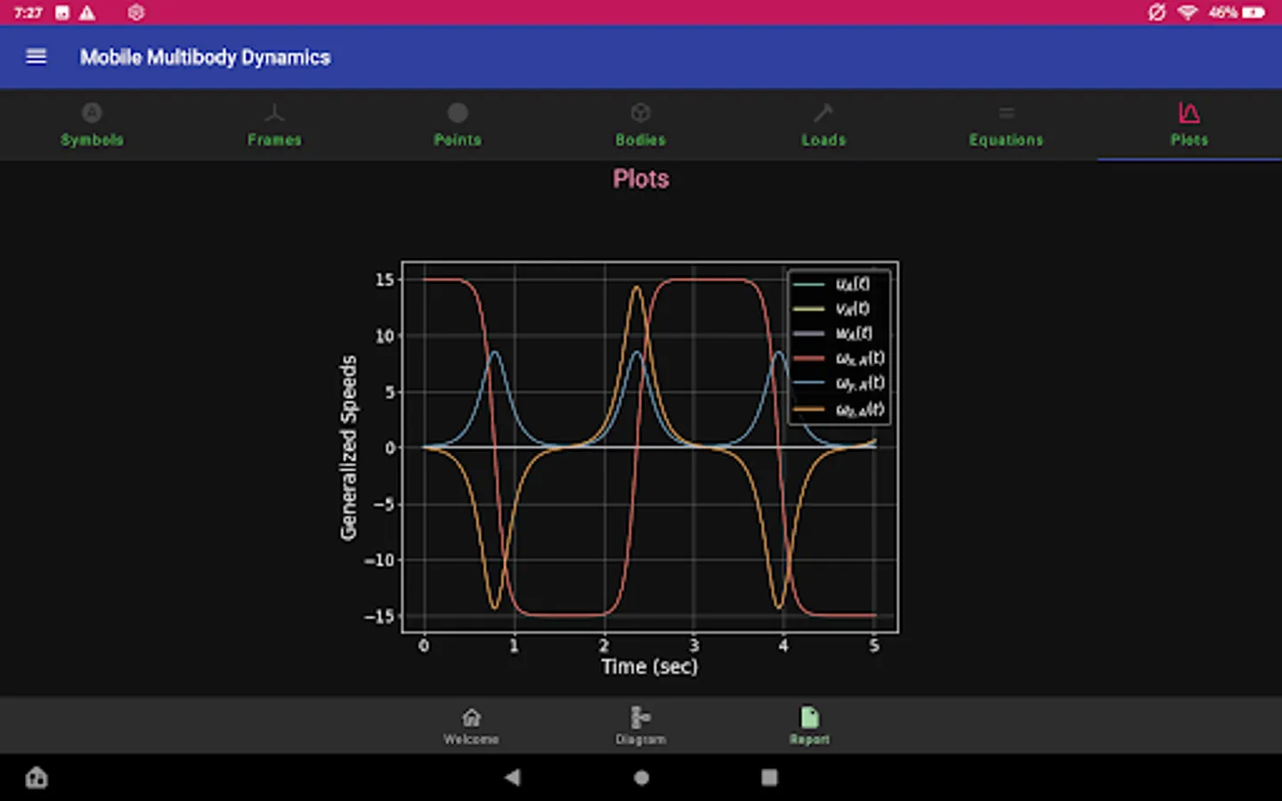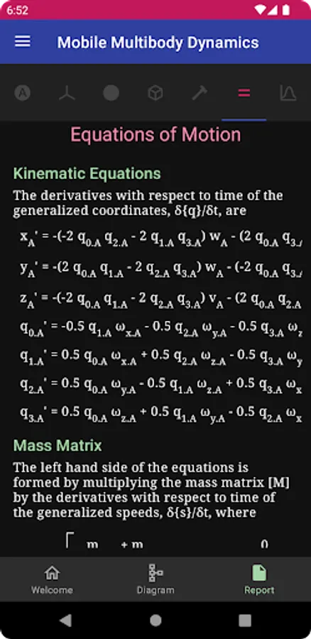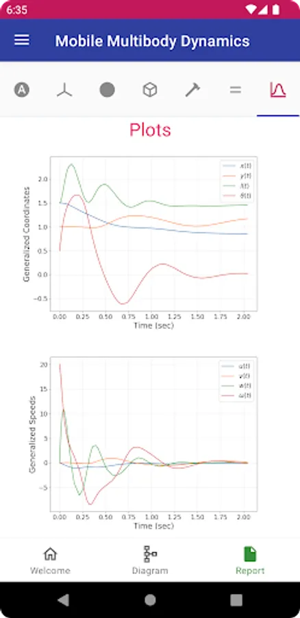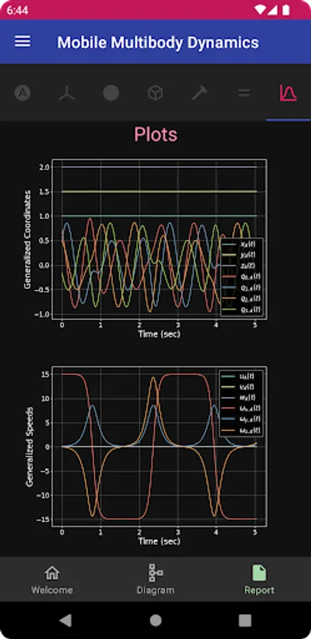 Your mobile device does a lot of amazing things, but no one would call it a high performance computer. Want to run your model once? No problem, MOMDYN has you covered. Want to run 100,000 cases in a Monte Carlo study? You’re going to want a professional workstation or computing cluster for that. This is advanced stuff, but MOMDYN can help: With the Export menu, you can choose to automatically generate Python source code that will replicate the same equations and parameters that you set up on your device, and can be executed in a Python environment using common and freely available packages. Want phase plots, frequency spectra, or to integrate your mechanism model with another physical or control system? If you can code it, you can do it.