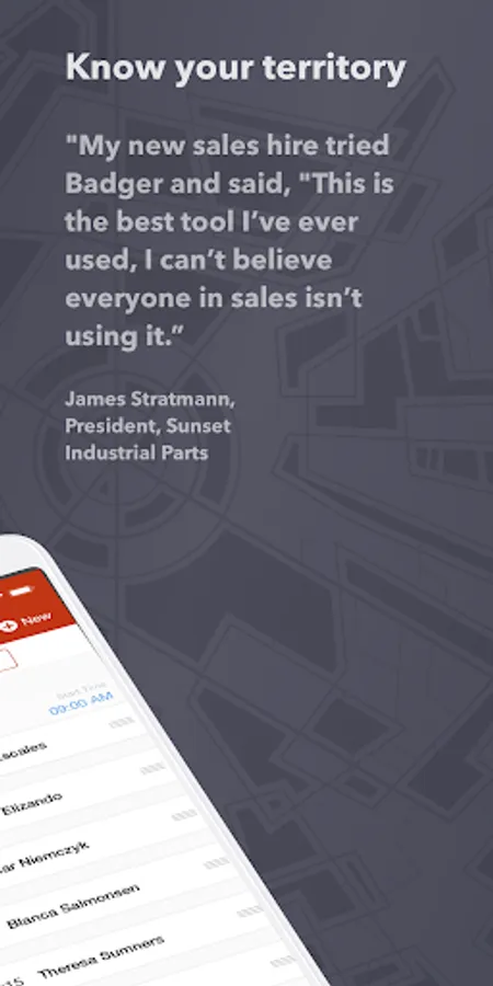 "After getting Badger Maps, weekly meetings per rep jumped from 12 to 20. This led to a 22% increase in annual revenue." - Brad Moxley, Business Development Manager, Cutter & Buck