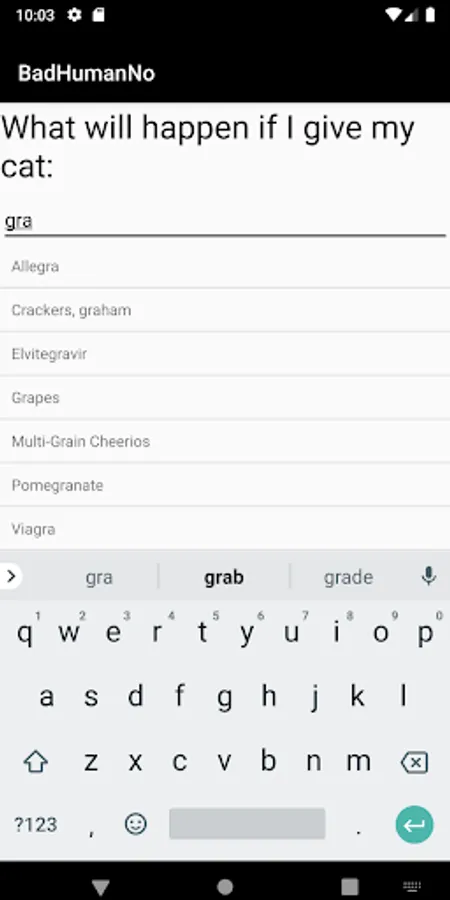 The application is designed for pet owners to have a database of drug and food safety information. The database is designed for preventative use. Thus, pet owners can easily access information on a common medication or food before giving it to their pets.