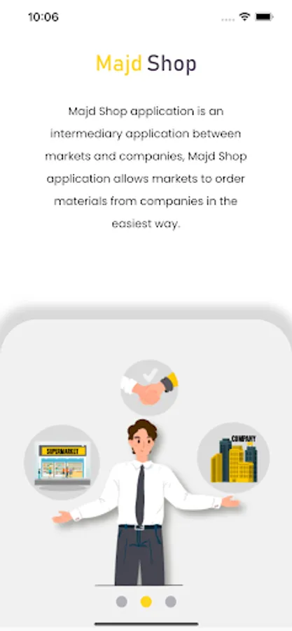 The Majd Shop application is the first program of its kind at the level of Iraq to facilitate the work of companies and markets and to increase the marketing of the company's products. The Majd Shop program acts as an intermediary between the company and the markets to sell and market the company's products in the easiest way and in the shortest time. The Majd Shop application provides many services to the markets Such as (ordering the company’s products, obtaining offers and discounts in the offers section, searching for a product by scanning the barcode, searching for companies and company products, and many other services) and the Majd Shop application is characterized by ease of use and speed of use.