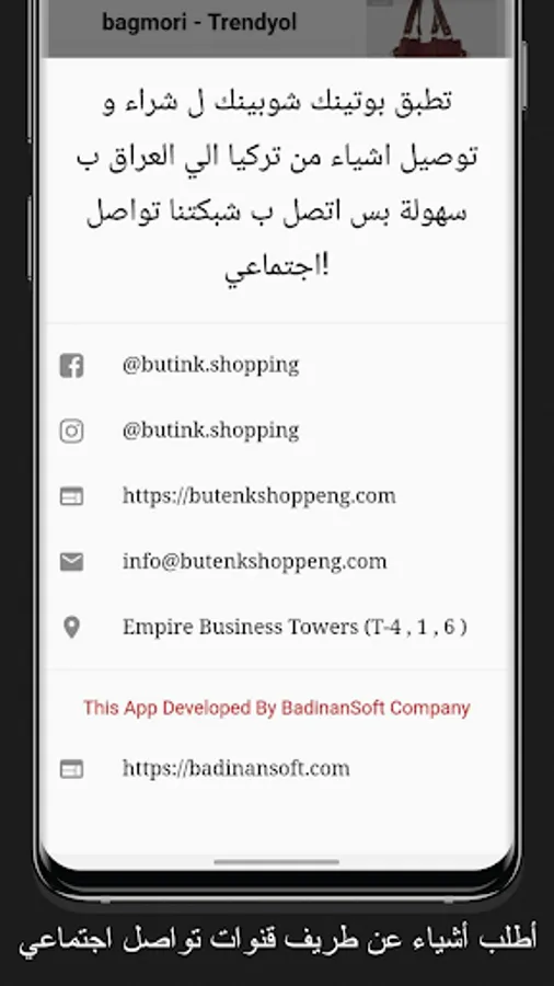 تطبق بوتينك شوبينك ل شراء و توصيل اشياء من تركيا الي العراق ب سهولة بس اتصل ب شبكتنا تواصل اجتماعي!