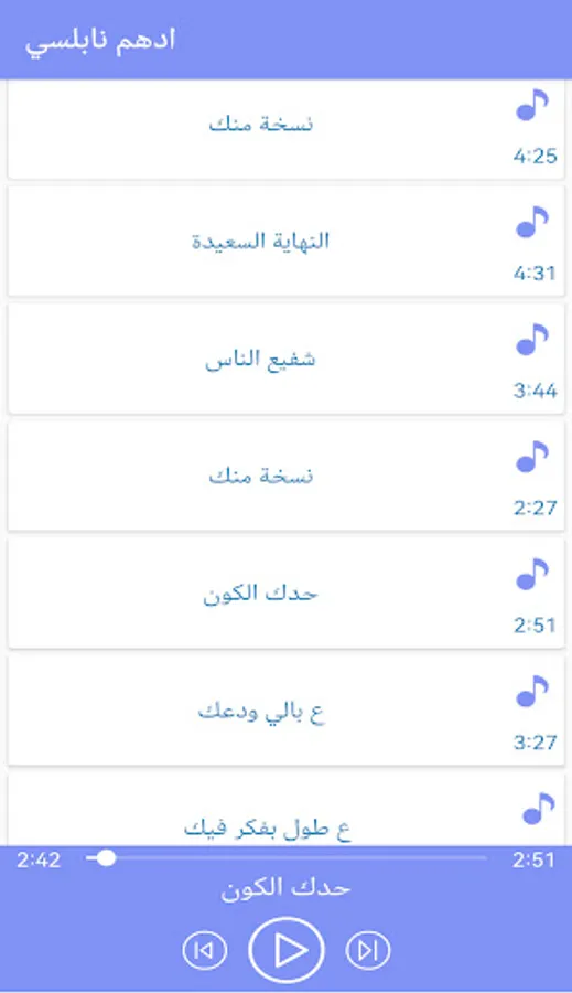 ارجو الاستمتاع بجميع أغاني ادهم نابلسي في هذا التطبيق ، وإذا كان لديك أي اقتراحات فلا تتردد في الاتصال بنا