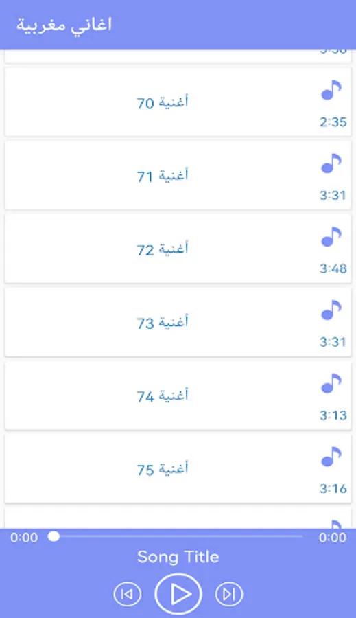ارجو الاستمتاع بجميع اغاني مغربية في هذا التطبيق ، وإذا كان لديك أي اقتراحات فلا تتردد في الاتصال بنا