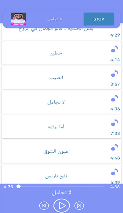 يحتوي تطبيق على جميع أغاني حسين الجسمي بدون انترنت مجانا