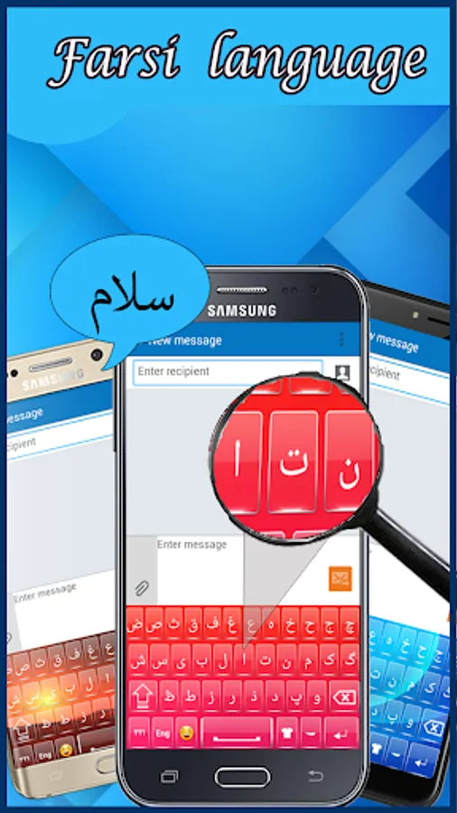 Golden, Snow, blue, skull, purple and more. Persian language app provides a variety of free keyboard themes are recommended for your choice. Persian Keyboard will change the recommended content regularly to meet your needs through Update.