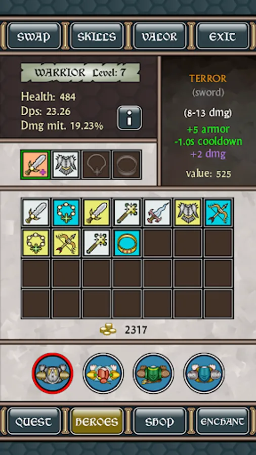 If you enjoyed the demo, check out the final version of Arena Quest RPG (more heroes, skills, monsters, loot, item mods, legendary artefacts, boss fights and more!)